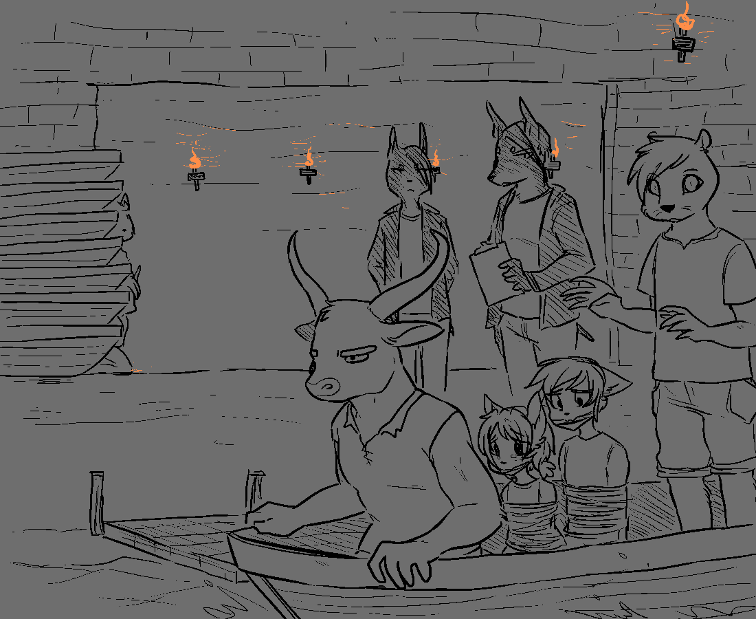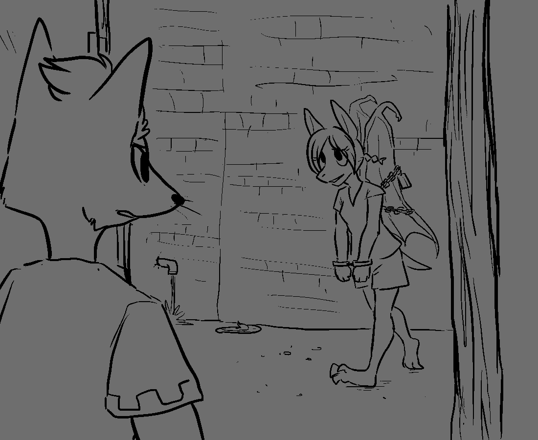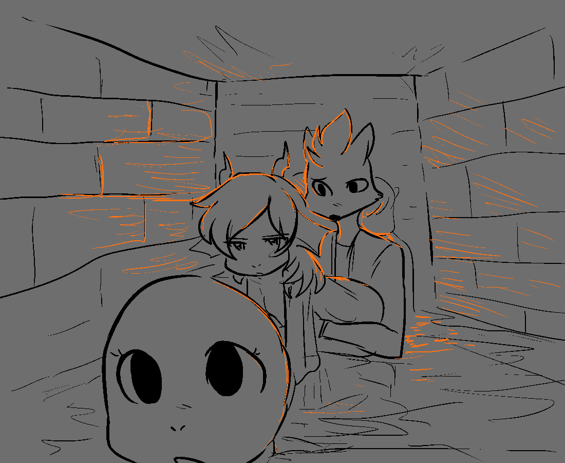 You explain that everyone present are all jailbreaked prisoners, much like himself and briefly you manage to elaborate on who's running this operation and why. Of course, you didn't know all of the details yourself, but you knew a lot more than him. You and the others state your name and such, except for Alrauna who merely snorted at him and turned her head. The otter boy wrung his hands together, looking a bit overwhelmed at all of this. "My name's Oliver...so we've really been taken as prisoners from our own homes?" You nod. "W-Wow...I..." He rubbed his eyes furiously, uttering a few desperate sniffles. "That's a lot to t-take in..." Pulling Oliver in, you give him a consoling hug before handing him over to the others, to let them work things out. Turning around, you see that the two kids from before were gone. You assumed they promptly ran off after realizing it was safe... You pull Alrauna off to the side, prodding her about what it was she did back there. The halfling glanced at you with a raised eyebrow, hands crossed over her chest. "It was just a simple chant to release him. I might've also erased his memory in the process...but it was for his own good." She flicked her tail, turning her eyes away from you. "I'm hungry. We should locate the kitchen and fuel up before escaping. I know where the kitchen is, but who's to say that there aren't any guards in there right now. Guards have to eat too ya know." You return to Becca and the rest of them, gauging how hungry they were. Each of them nervously rubbed their stomachs, admitting they wouldn't mind eating.