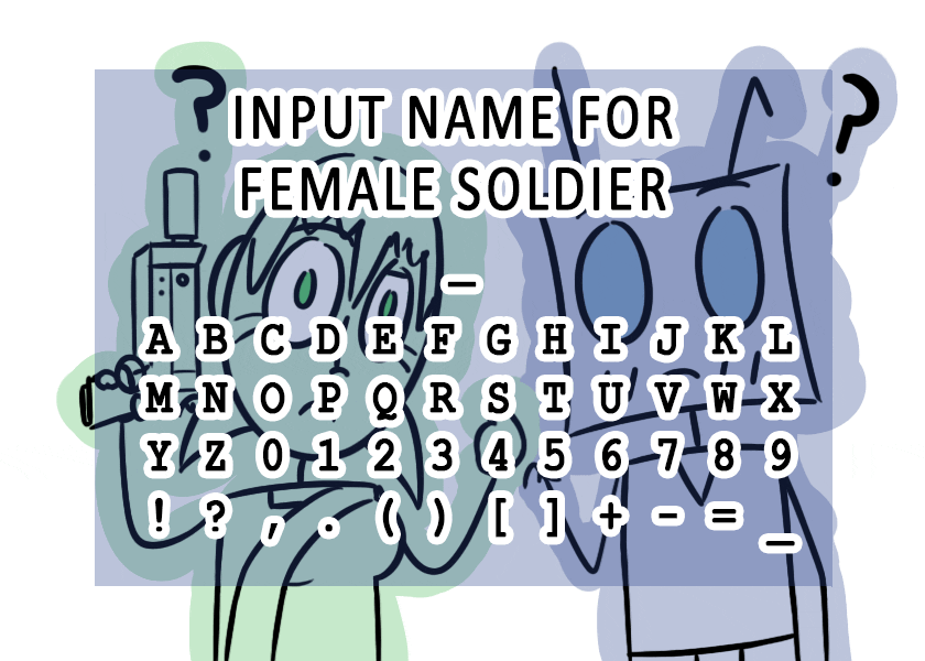 >>INPUT NAME FOR FEMALE SOLDIER: _