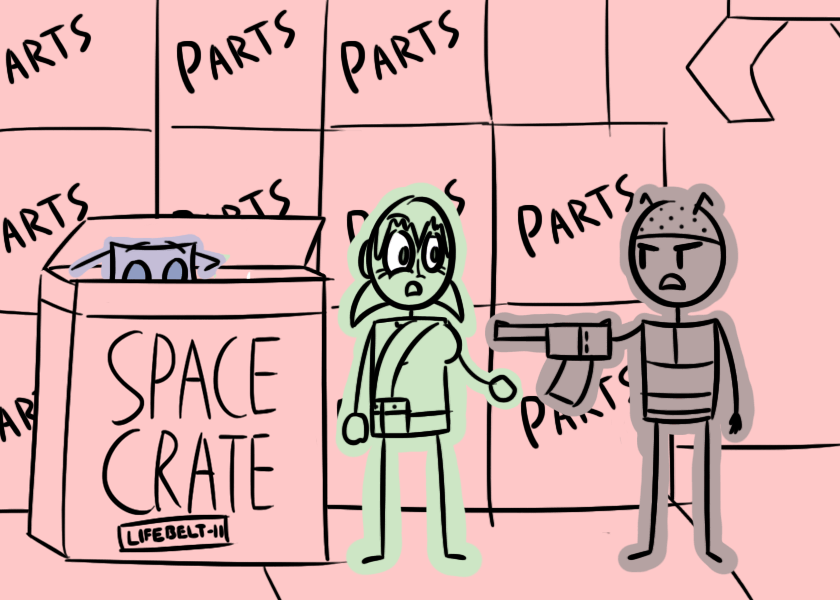 So yeah, all three doors out of this dockin' bay are locked. Now, I don't suppose ya have any idea on how I may get out of this room, do ya? I think there's a small terminal in here somewhere. Oh, 'n' there's the crane too in case you got some ideas for that.