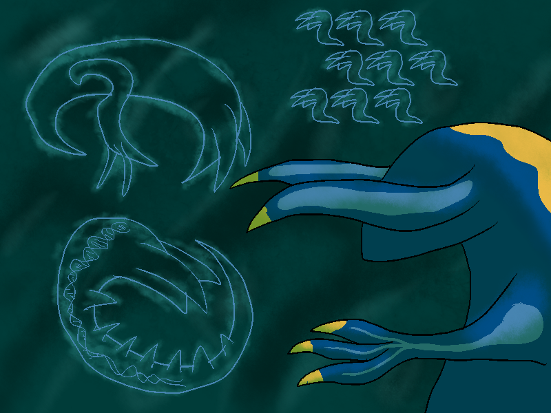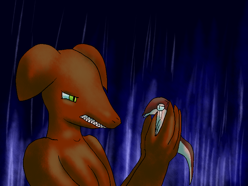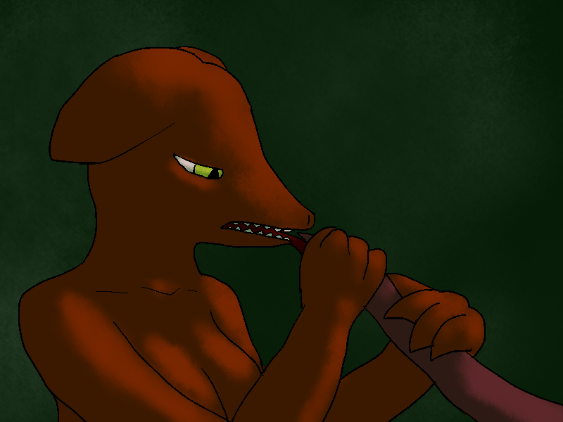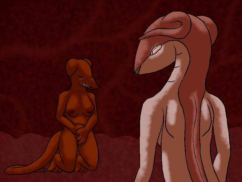 Suddenly, Culya notices movement. Something blue, at least as large as her. It slithers from behind her.