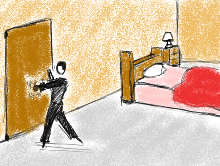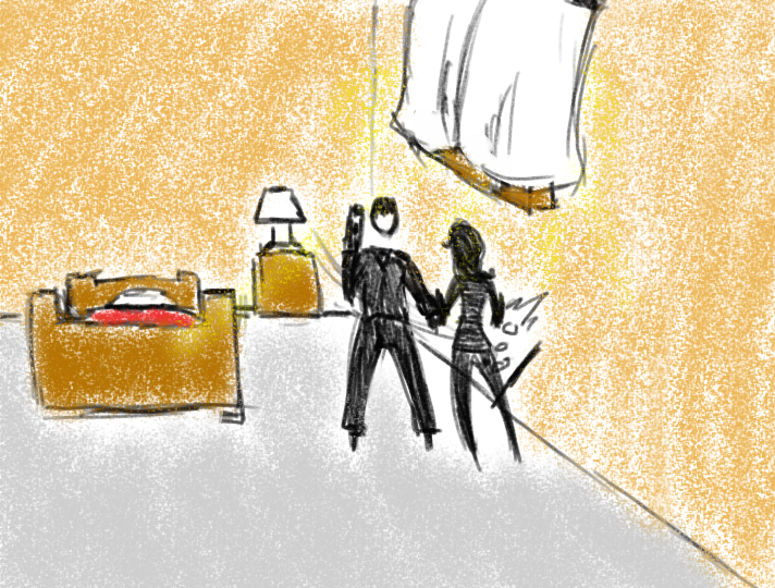 Meanwhile cut back to the room