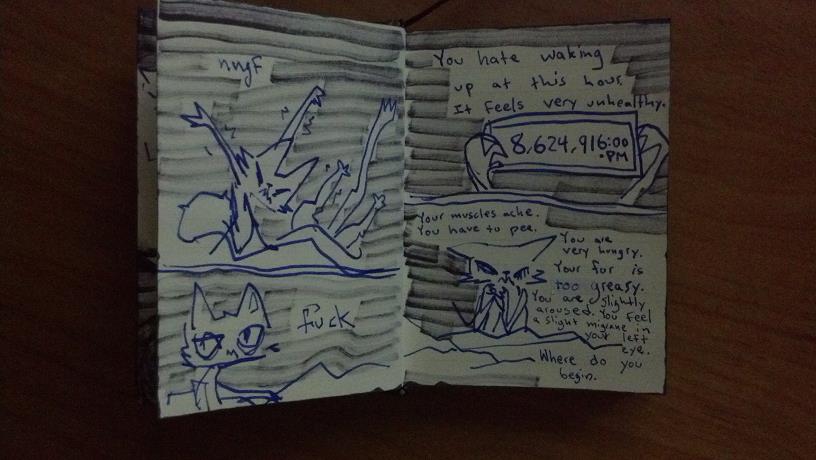 >>601677 Get up and stretch, then go to the bathroom to pee and look at your eye. >>601672 Your dreams always like that? >>601677 ((whats with the time? Is it meant to not make any sense or am I just reading it incredibly wrong?))
