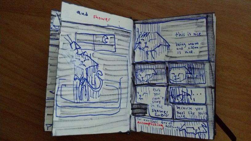 Get in the shower, stinky. Wake yourself up, maybe take care of that migraine some.