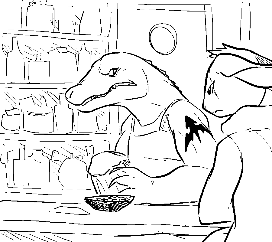 "Don't thank me yet..." You clean up the blood from her face, wiping at the cuts, causing her to flinch with each stroke. "This is going to hurt, so please try and stay quiet..." You take a thick napkin and soak a small area in alcohol. Then, you begin to wipe away at the open wounds. "Hhshh..." She hisses under her breath, holding her tongue through the stinging burns. "I got a first aid kit." The man from before entered the kitchen with a stained, white box. Inside the kit were simple medical supplies for minor injuries. Bandages, cloth, disinfectant, syringes, a tourniquet and various bottles of medicine, including aspirin and antibiotics. It took no more than 10 minutes to fully patch up the woman, the only remaining trace of injury being the blood stains on her clothing.