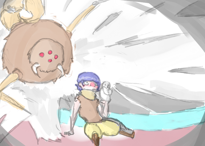 Geeze, it's soundin' like the troll pits back home down there! Maybe th' spider thing woulda been safer....