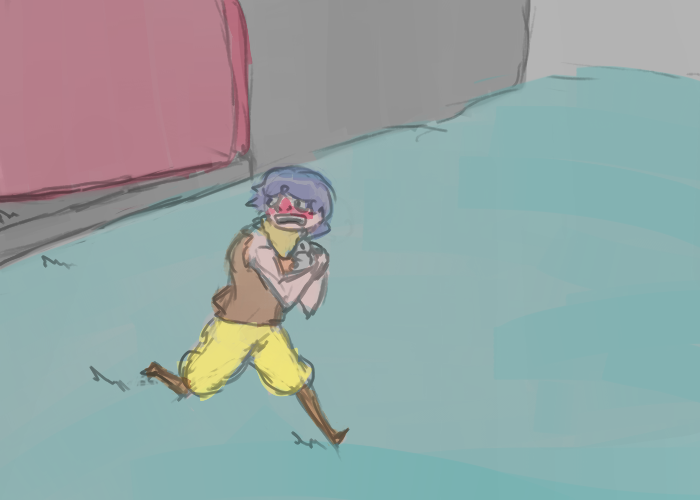 Heh, th' creep'sh tryin' t' compenshitate, we got 'im shcared. What d'we want from 'im, eh?