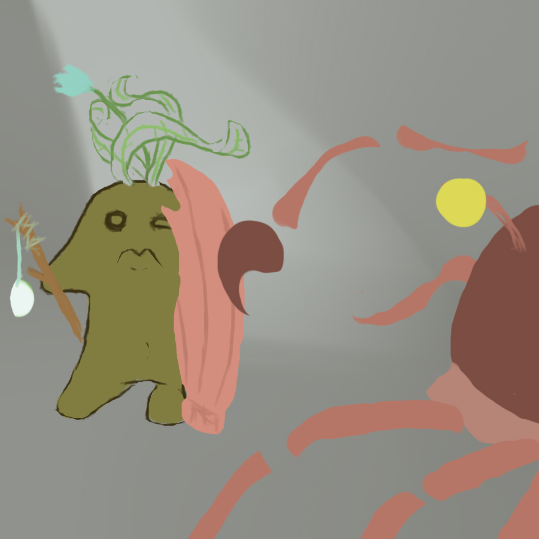It'll take you a while to make some effective weaponry and armor, but your GROWTH should make it simpler. Sadly, your previous equipment is getting too small for you. Your stick might only be good for carrying Glowitus for you now, and the shell defender is not much of a tower shield anymore.