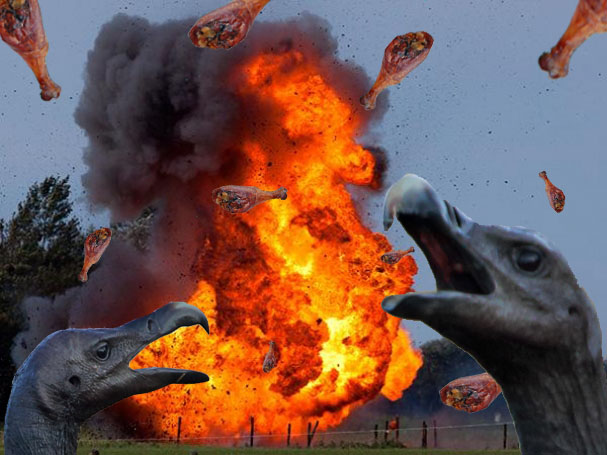 RONALDO stands and looks out over the yard. The LOYAL GRIFFINS sit atop the woman and BRUTES, waiting their next command. The apple trees rustle as a GINORMOUS BEAVER passes, the ANTENNAS blink silently and you wonder why someone would fill a tree with them. In the distance you can see the MATCHSTICKS jutting out over the HUGE houses, the tops painted white with a layer of SHIT.