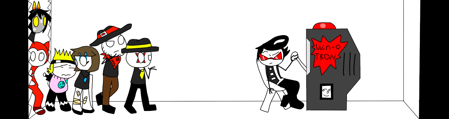 First, this is Raio's best friend Tomoko! See, Raio (In Red) and his bitches, the Trouble BOYS not BOIZ. (in black) Were hired by a client to go investigate a mansion where supposedly a great evil had kidnapped a busty, beautiful babe. Raio, Tomoko (in blue), and the boys decided that Raio would get the girl, and they would get the money. They devised the perfect plan! Get Tomoko to look like an attractive young girl, wait for the evil thing to kidnap him, and then ambush the bad guy with the rest of his boys! Then once he kicked this bad guy's ass, he would be the one getting the girl, Tomoko getting the money, and the evil dude getting your friend FISTY!! JUSTICEEEEE!!!