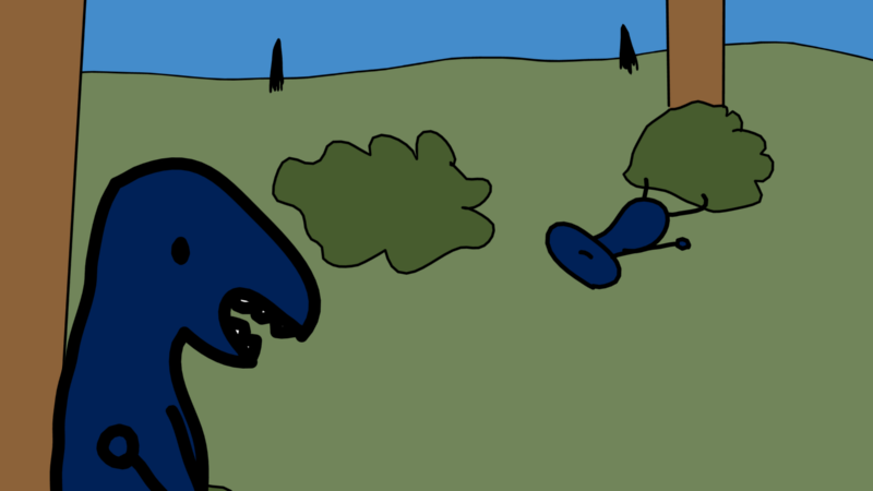 We return to find the Tippitars in their new and improved home. Around them, sticks create walls, and are held together by vines. Leaves cast a cool shadow upon the Tippitars as they continue to stockpile berries, sharp sticks, sharp rocks, and a very interesting collection of 'light rocks' which spark when hit together. A layer of leaves and brush serve as a comfy bedding for the Tippitars. The large amount of progress was in no doubt aided by their development of cooperation. Getting twice the amount of work done together. Fuckup Dropseverything returns from a trip to the very small nearby stream. Which serves as their primary water source.