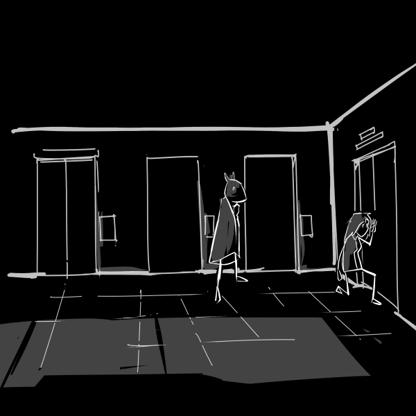 >"Go left. It should be through a set of double doors."