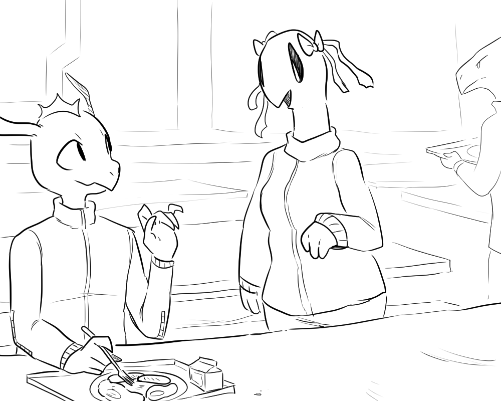 "I did get an email, but they asked that I keep it a secret. I hope you don't mind me not saying..." Tava expressed a look of disappointment, but she nodded in understanding. "I don't mind. Best not to test your luck. S.P.a.C.E has a tendency to get kinda serious about matters like that." You place a hand on her arm and give her a reassuring smile. "Hey! I think you should go train those students, though. It'd look great on a resume and it sounds really fun!" She angled her head, frowning. "I'm not sure. I don't think I'd make a great teacher...I barely know what I'm doing now, hehe. But thank you for supporting me.” Tava never had a whole lot of confidence in herself. She performs at the top of her class and has been praised by almost every head officer in the force, in some form or another. ”Hey, I'm gonna go fetch some food, okay? Wait right there!" Tava took her leave and you now sat in your own company yet again, left to contemplate over a few things.