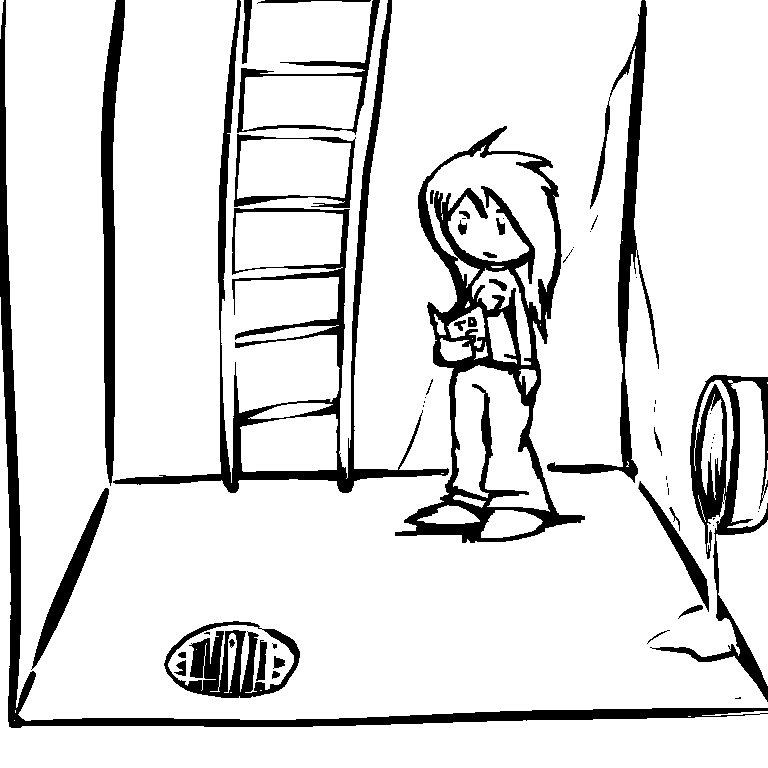 It's dark and smelly. The walls are decrepit and moldy, filling the air with a musty smell. A little stream of water pours from the pipe, filling up a puddle which may one day escape to the well-worn path to the drain. It's a simple cycle, for a simple room. But are you such a simple person?