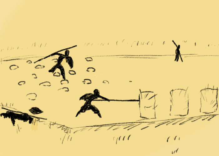 -shallow ditch behind us?