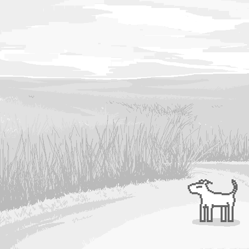 To your right there's a large hilly field of short grass, some trees, and then in the distance a whole bunch of trees. Your sense of smell and hearing are much better than your eyes but the distant trees remind you of HIKES you've had with your person in the past.