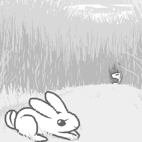 Well, to your left there is a field of tall grass that seems to go on forever. You are downwind from it and can smell rabbits and mice in the air. Your stomach grumbles hungerly.