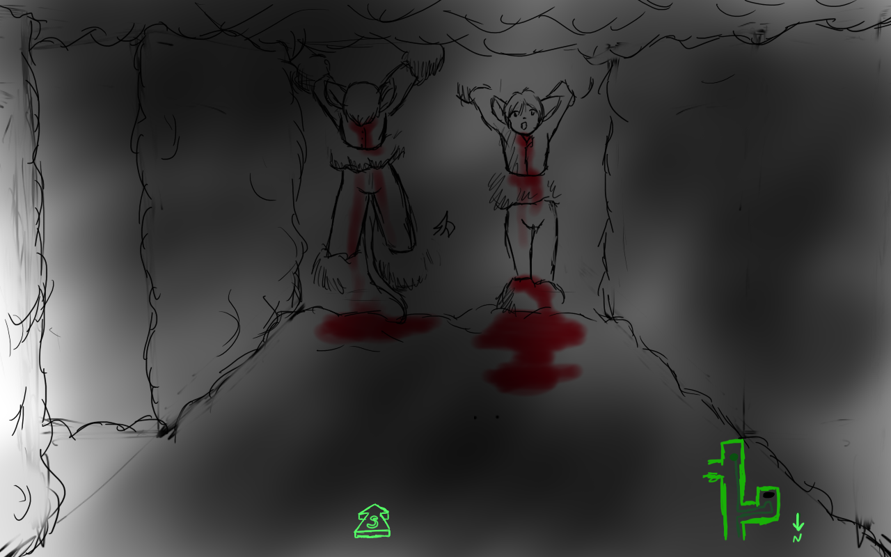 Lina taps the hammer rythmically, the echo of her song starts behaving strangely, the critters seem disoriented, even your ears can't tell where exactley the song comes from with all the echo in the mine, one by one, they rush full speed trough the field of spikes, the first three ones seemingly enraged plow trough most of the spike field until they fall, unable to go on, while the last ones to catch up barely enter the field but in their confusion they seem driven to go on