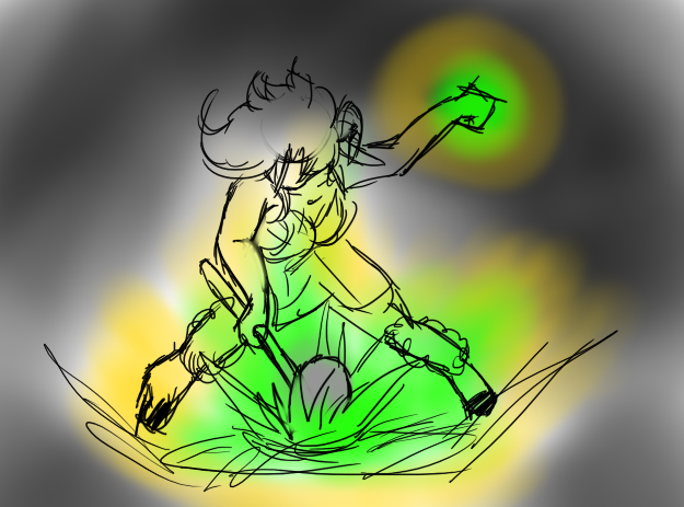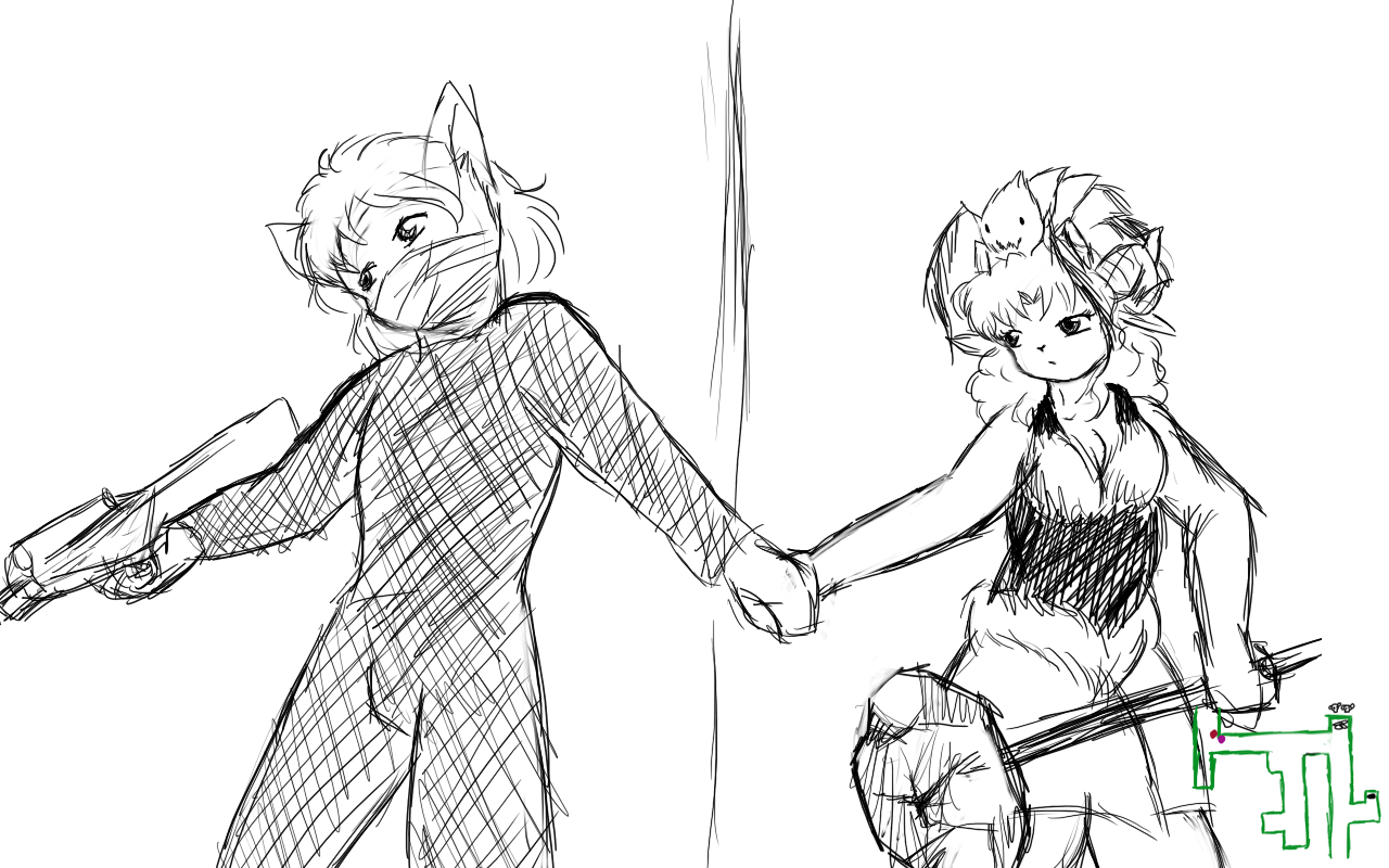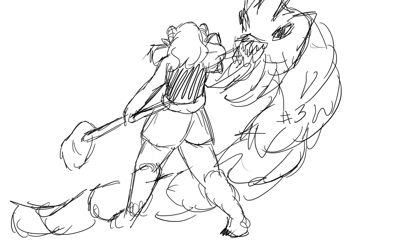 with a wide arc of her hammer, she enlarges one of the spikes holding the nearest critter, impaling it as it remains helpless, looking over her shoulder at you, she nods "alright pup, let's dance!"