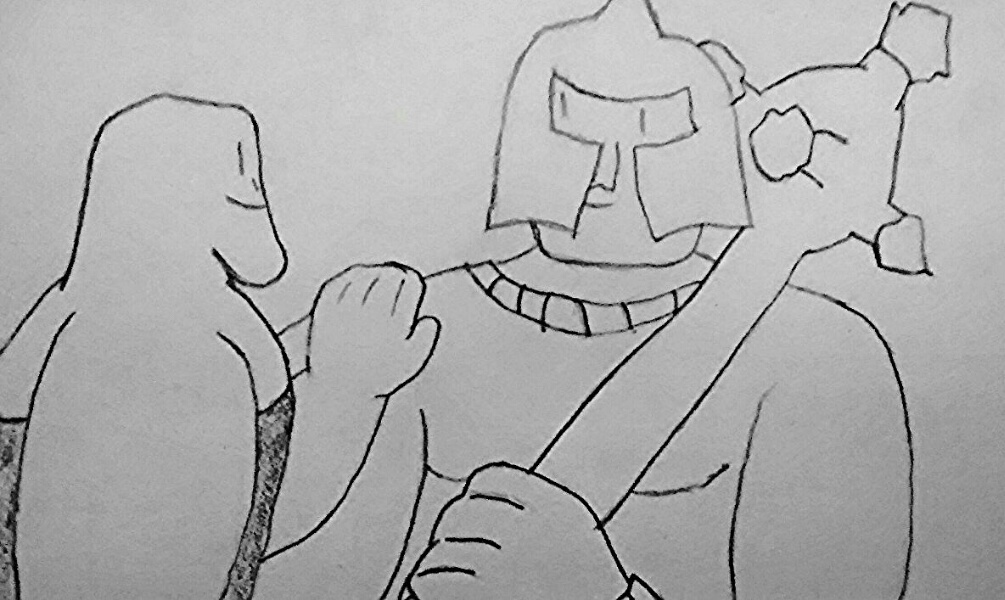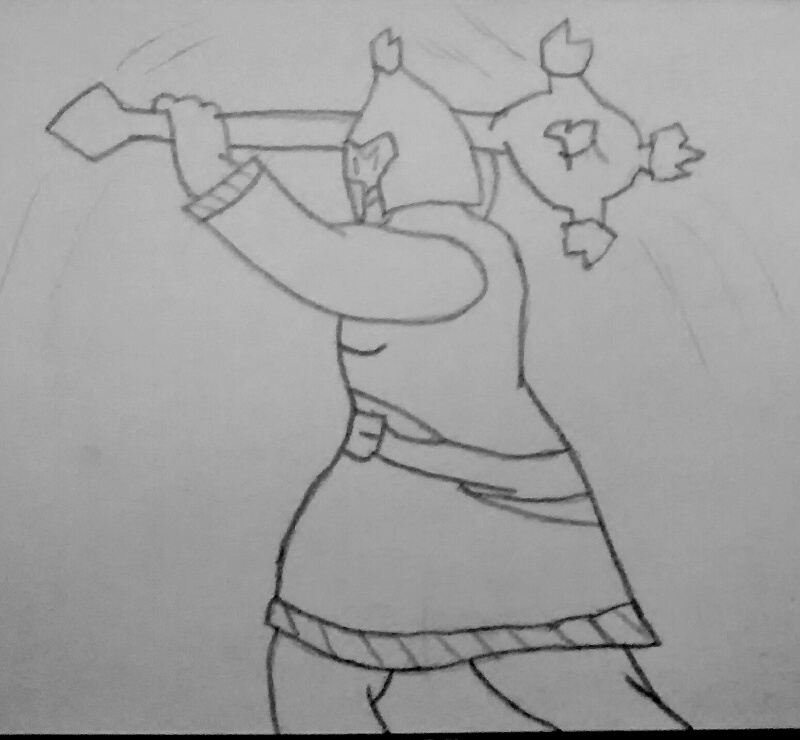Are you a Knight-In-Training? Wielding your father's shield and an old broken sword you've fixed up and improved with your amateur weaponsmithing skill, you're rather strong, and hard to put down; not because you're particularly hardy or tough, but more because you possess the kind of will, drive and stubbornness that frightens brick walls between you and your goal. You're not experienced in actual battle, but you've been practicing since you were a little kid for adventuring, and you're excited to finally prove to yourself, and to everyone else, that you can be a real adventurer. You have a backpack full of various adventure gear, from chalk to rope to a grappling hook, and your mother's lucky pendant to guide your way.
