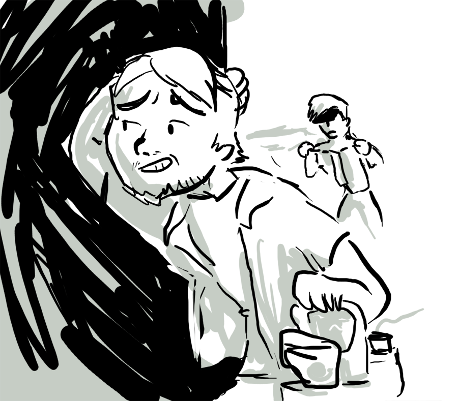He takes a different car out from the one you drove and pulls into the drive way. You see him off and find it hard to muster waving goodbye when he's gritting his teeth like that.