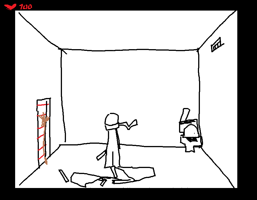 >>637496 Is the vent too high up to reach? It looks too thin for you to enter, but maybe there's something in the vent. Also poke the laser door with your stick. The reaction from the poop implies those are not actually lasers, and it's a solid door.