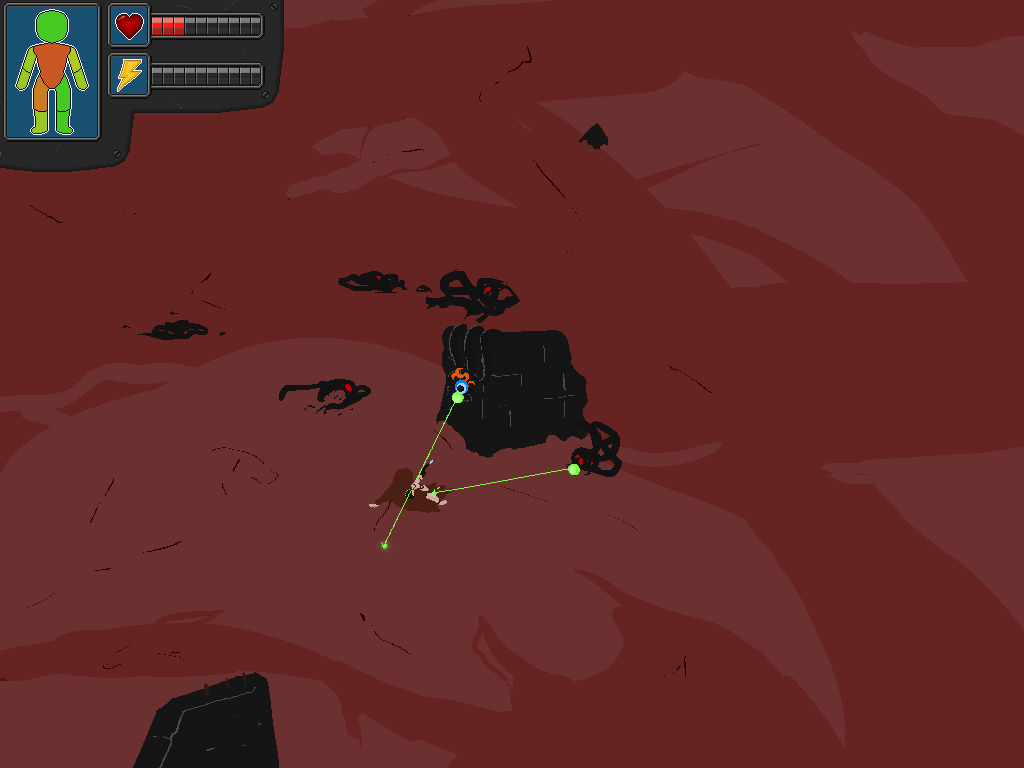 Attempting to destroy them both in a preemptive attack is only partially successful, the one to the left explodes spectacularly from a direct hit and the drone to the right begins to move and fires a cutter beam of some sort, scoring a hit to the torso and right leg.