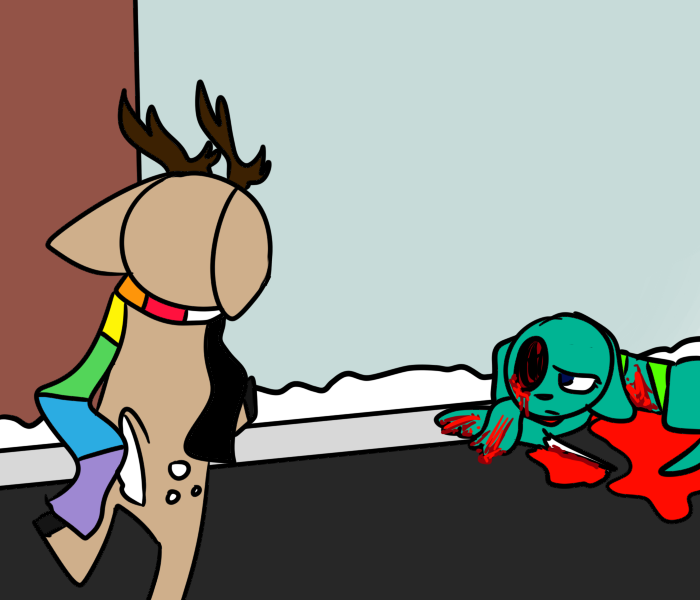 Rude. Syd would say something to him about his actions, but he just doesn't talk much, and Roger does this all the time anyway. The deer wonders if Roger might be hungry. It's a polite thing to offer him something, but sitting down might help our protagonist calm down after that surprise.