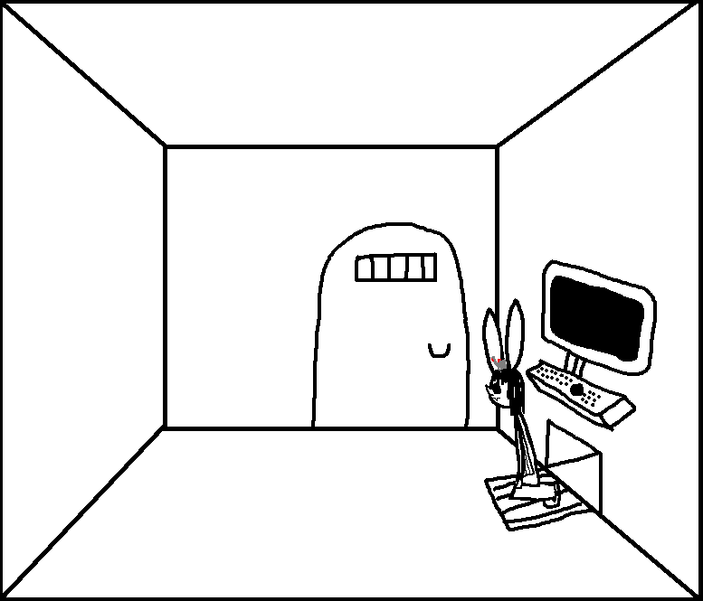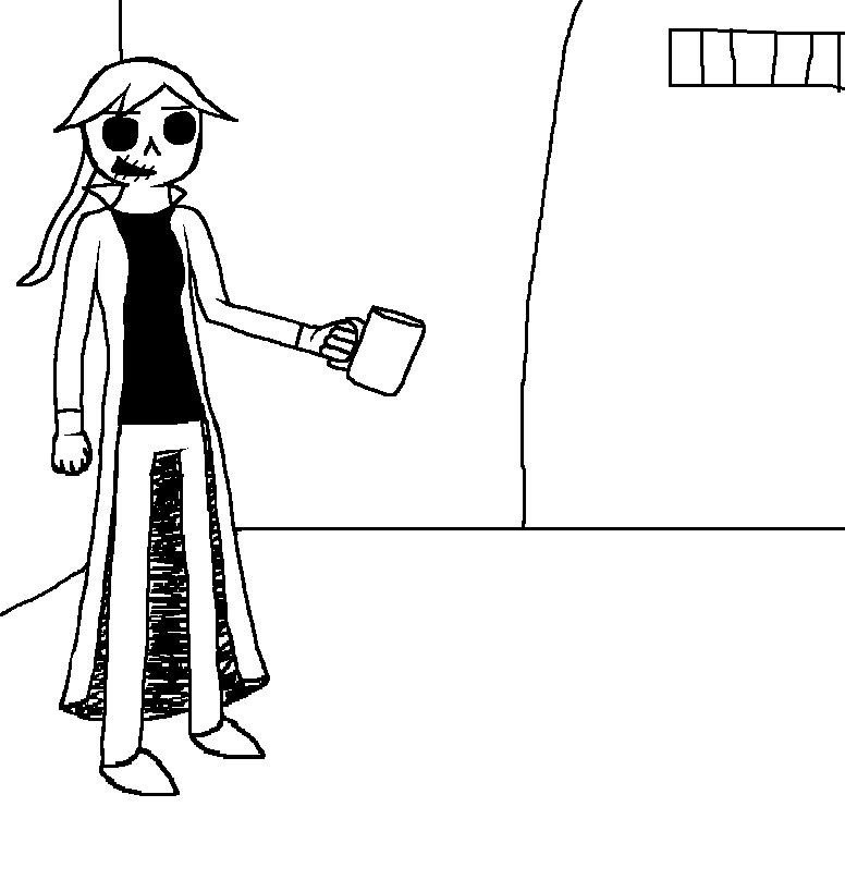 >>661367 What's that it's holding? Some kind of weapon? Or a coffee cup? You could try escaping back through the vents if this wasn't a dead end. Otherwise you'd have to run out the door.