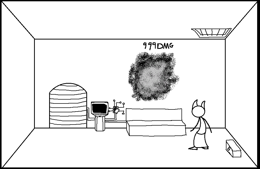 Her knees buckle and she falls backwards hitting her head on the metal floor giving her a bloody, and I mean BLOODY concussion.