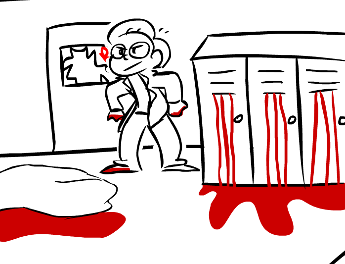 You topple over the lockers to ensure that they never open despite the previous movie trope being mentioned because fuck movie tropes. Soon after you make a little ghost costume out of the tarp for your friend. It's a nice little way of saying goodbye to him, you know this is what he wanted, or at least what you wanted for him or some shit like that.