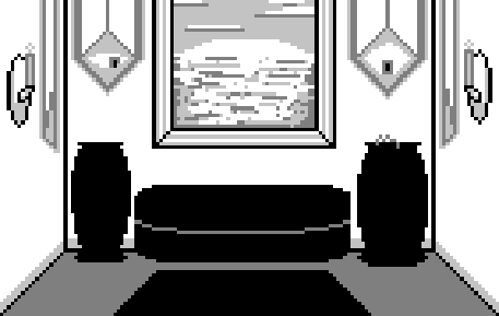 ... Not that you have much to survey. You have a really dusty, rotten smelling container next to you, another obsidian ceramic prison, something smelly and colorful behind you, and about four people weavings on the walls. And also two burning deathsticks in shining coat. You don't even have a door. Lame, right?