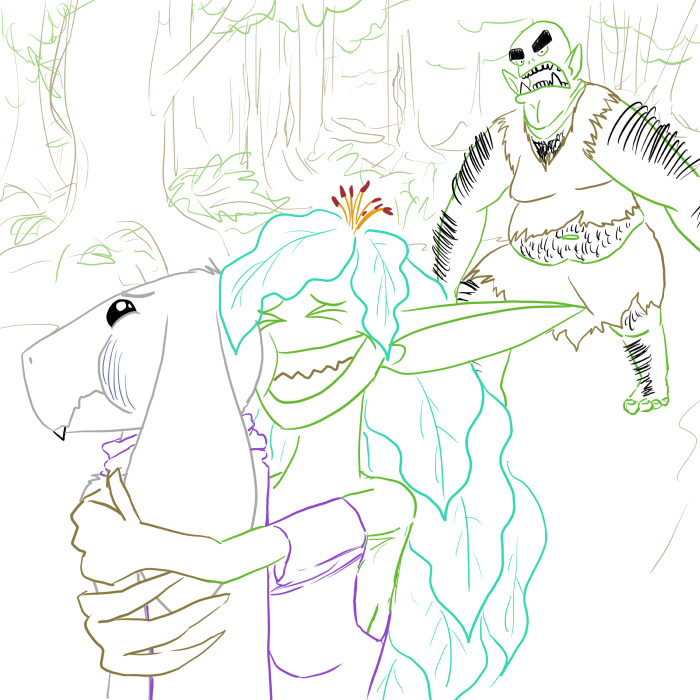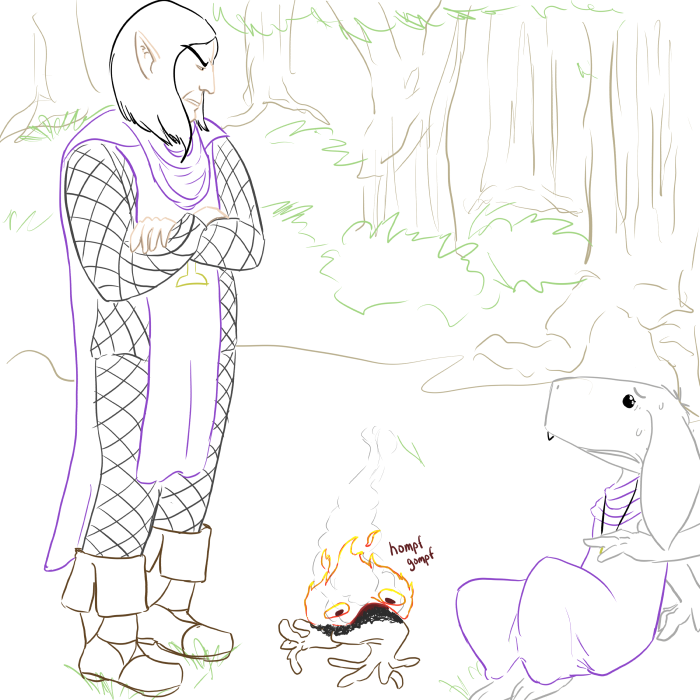 >>That exchange went swimmingly, we now know this elf is useless and really loves trees. We should grab your remaining supplies at camp and search for greener fields. Consider traveling with Hrrugh, would be a lot safter then traveling alone.