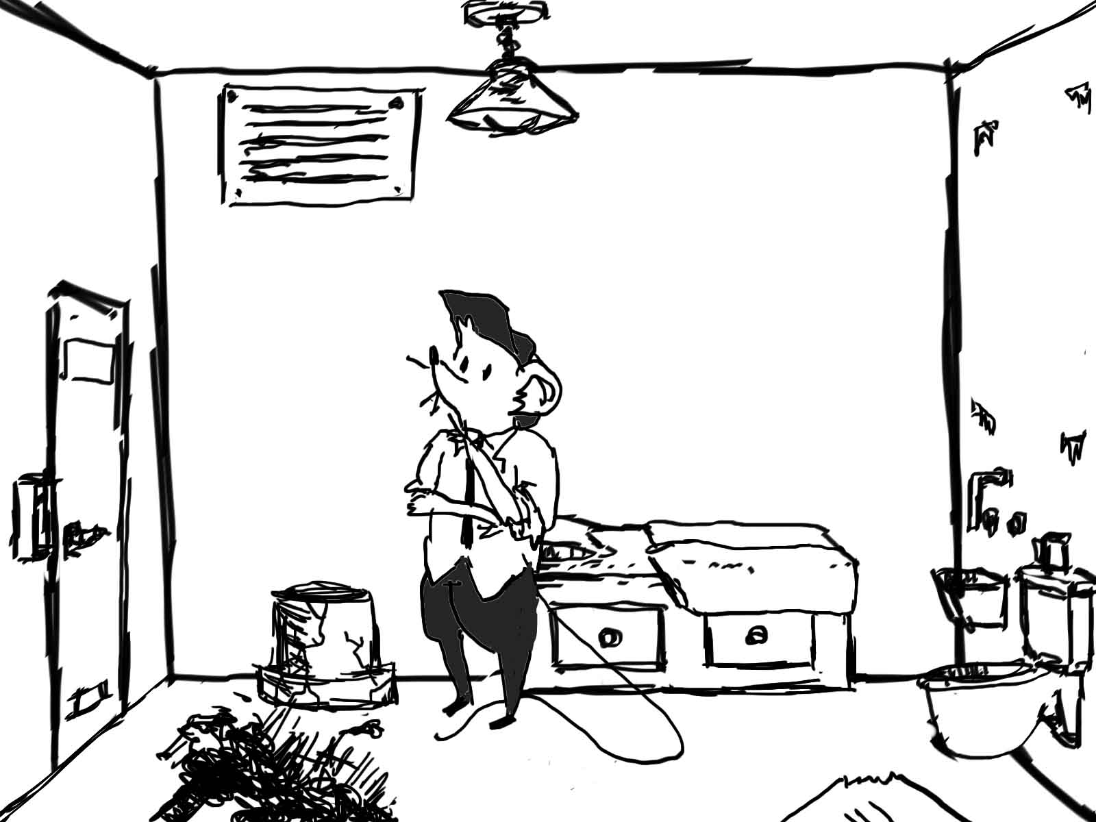The room is too bright and the FLUORESCENT BULB buzzes with an incessant whine that you only just noticed (how did you not notice it before?). The white walls begin to swim.