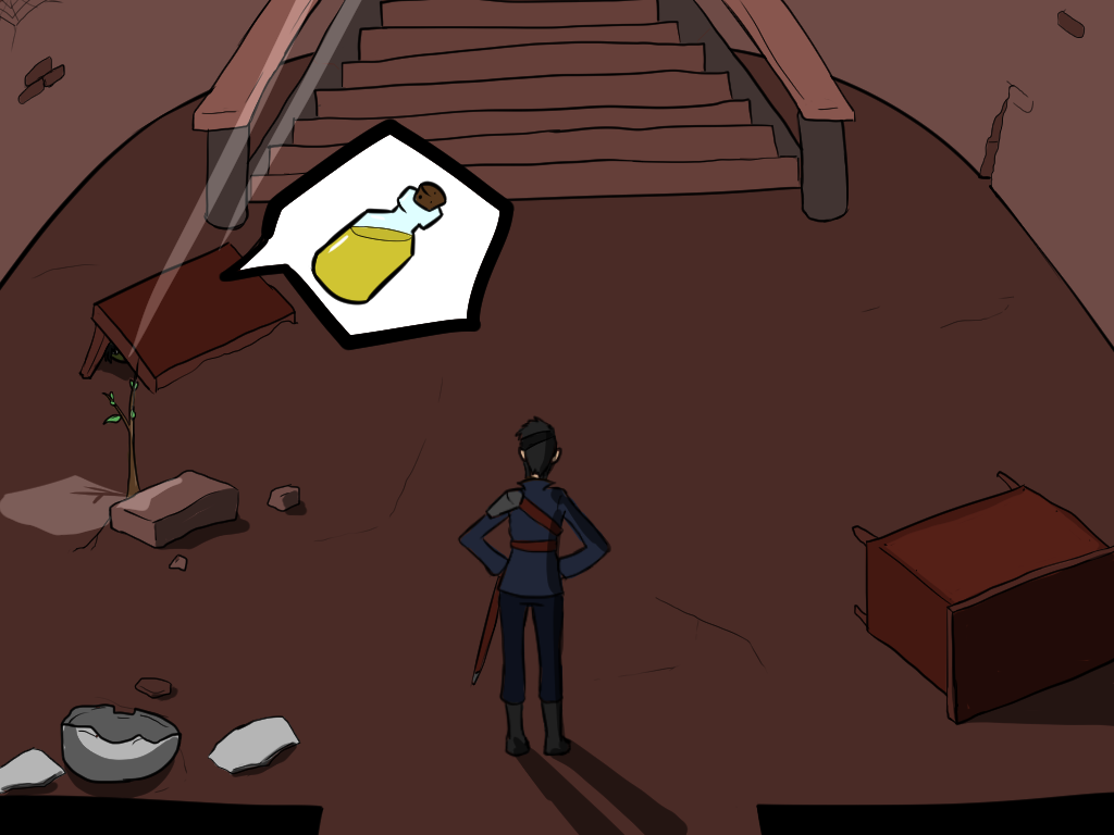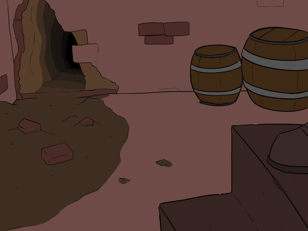 Hide behind a pillar while throwing a rock towards the entrance. Then move pillar to pillar when you have an opening. Come on, elf or goblin, you're supposed to be GREAT at stealth, only a cat or rat person could beat you at sneakiness... maybe a lizard-person too, especially if they have gecko hands and feet.