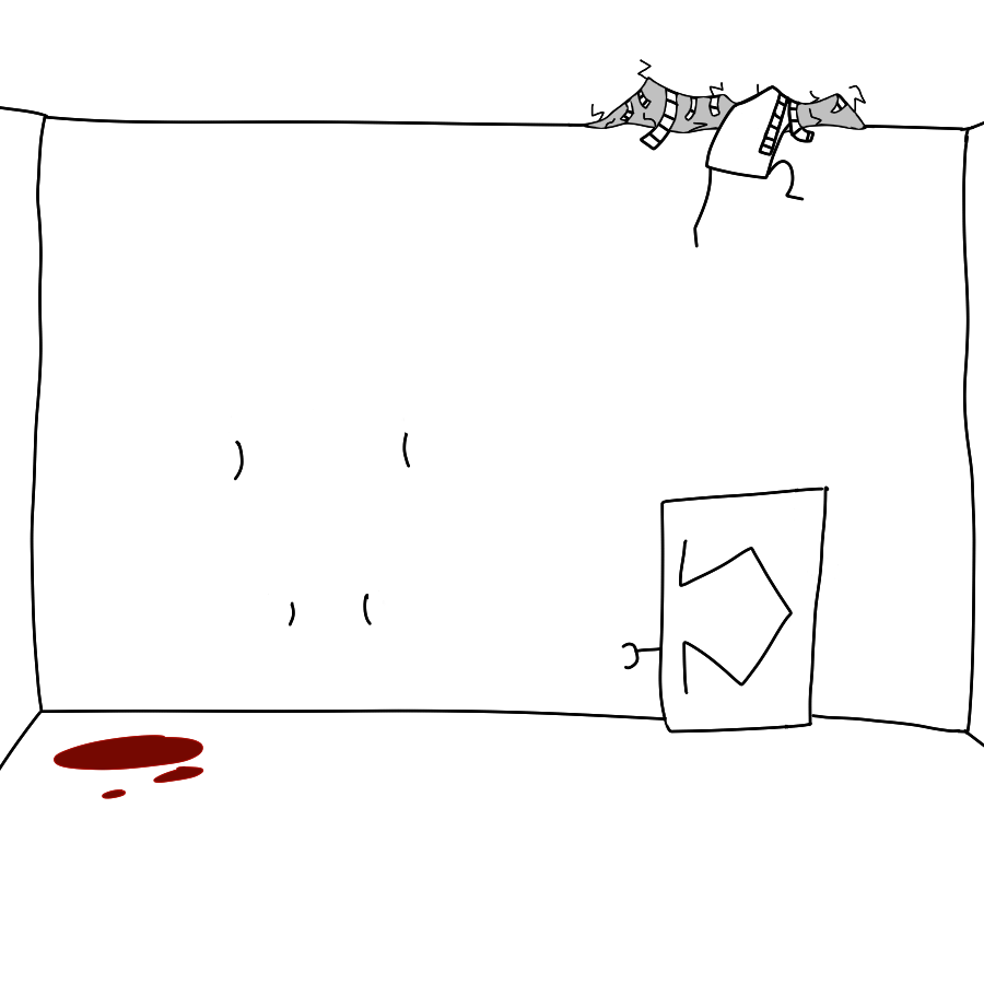 You use your right arm to free all your other limbs and stand kind of proud because now you can move but you're still trapped in this room