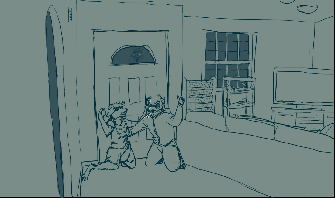 We sort of talk about this and that. Nathan does warn me that he thinks I'm ok, but I'd better not make any moves on brandon, which was obviously the reason he came over in the first place. We work and talk for a good long while, and as we're finishing up, we hear a car pull up and somebody fumble for keys before managing to unlock the door and stagger in.
