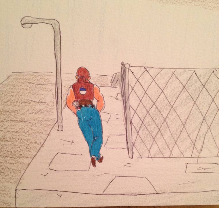 Standing in front of the entrance is a member of the Blues. He smirks as you come into view. "Sneaky plan kid, trying to get some guys," he says. "Reaaaal fuckin cute."