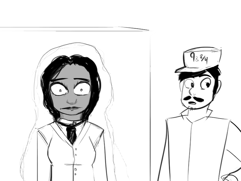 “Aha!” A younger boy ran down the train car towards Carrie, grinning happily. He reached the gigantic spider, pulled out a small, odd-looking stick, then started muttering weird words. Latin? Carrie wasn’t sure. The boy waited for a few moments, then looked disappointed. He turned his head back and called down the hallway. “Found it!”