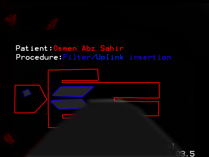 "How're we doing, Osmen?" asks the doctor. "You're able to move you right hand now. Two twitches means you want us to stop and give you some knockout gas. I'll give you the ability to look around again after we're done up here but you won't be able to talk if we're fiddling around with your lungs. Or breathe, really. We'll give you a mask for that."