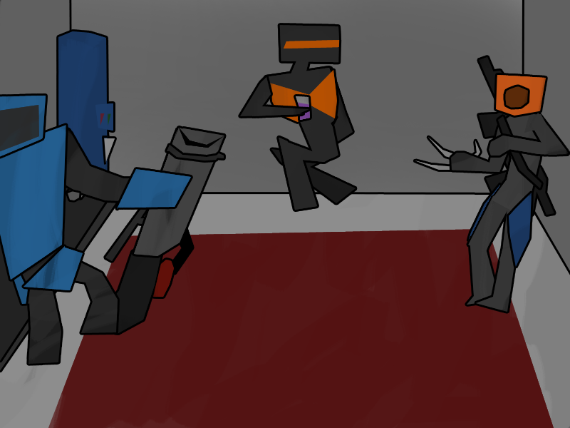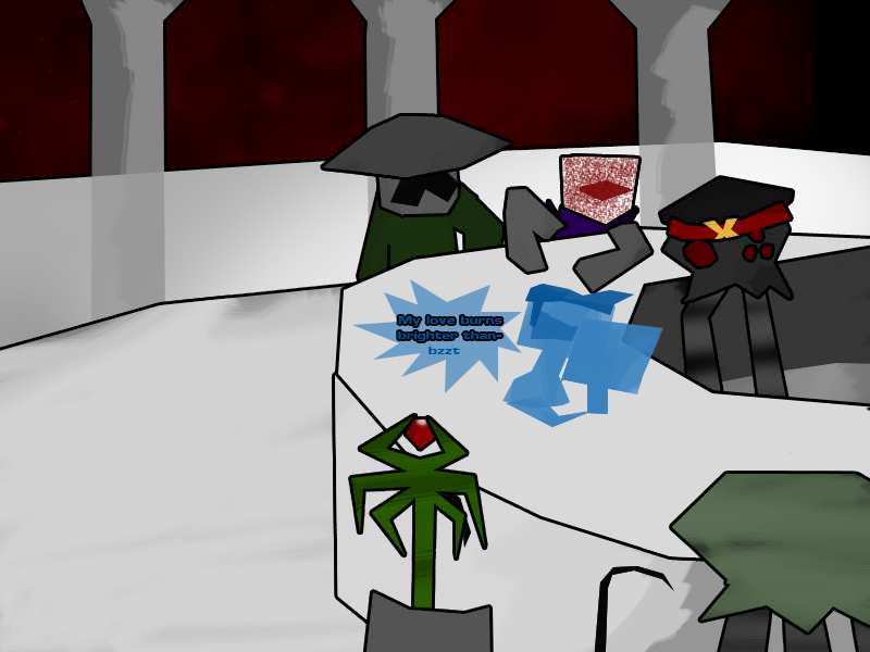 "Okay, okay everyone shut the fuck up, please," says Darman. "So here's my wonderful art of the plan we've got going-Attention Keith and Sophia, we're all very glad you finally hooked up, now stop playing grabass during the briefing, and save it for after the mission, okay? Aw, it's so sweet it's giving me diabetes -So this is direct from Theseus, you guys know him, he doesn't fuck around. Anyway, it's simple enough, your individual COs'll brief you on it when we split up, but before you go I just wanna wish you all good luck, try not to get iced, talking to you specifically Seamus-Don't look at me like that, everyone knows you're a respawn junkie." There's a shouted reply, muffled by the crowd's laughter.