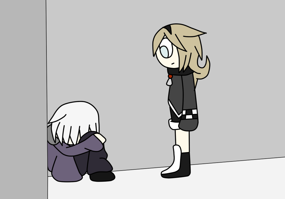 [You try to calm the two down with conversation asking them questions. Esa appears to stay at a comfortable distance, and the girl is leaning against a pillar not seeming to pay attention or care.]