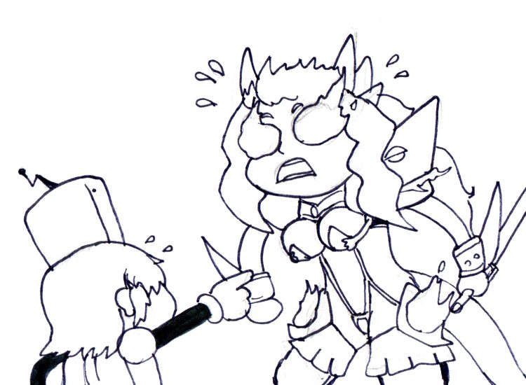 DUNGEON MONITOR: "Tch, you are not even trying at this point. I am the winner of the dungeon, brave, monitor tickler!"