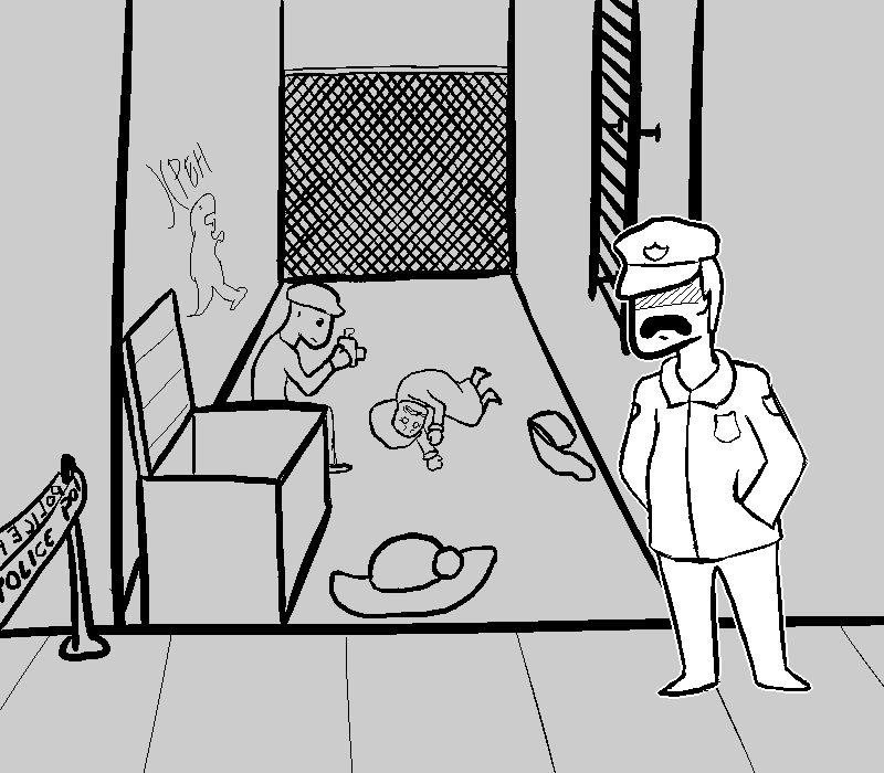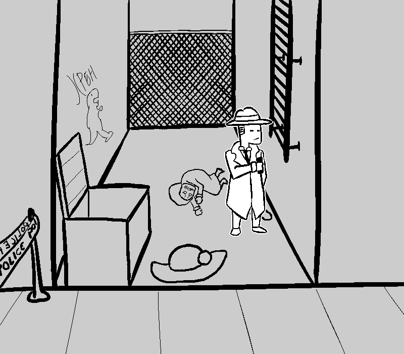 >We should check that ladder more closely since it would be the dogs only egress from the crime scene.