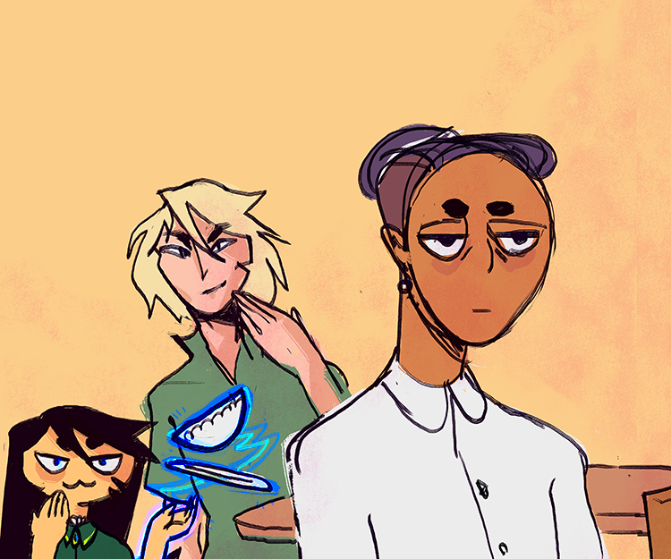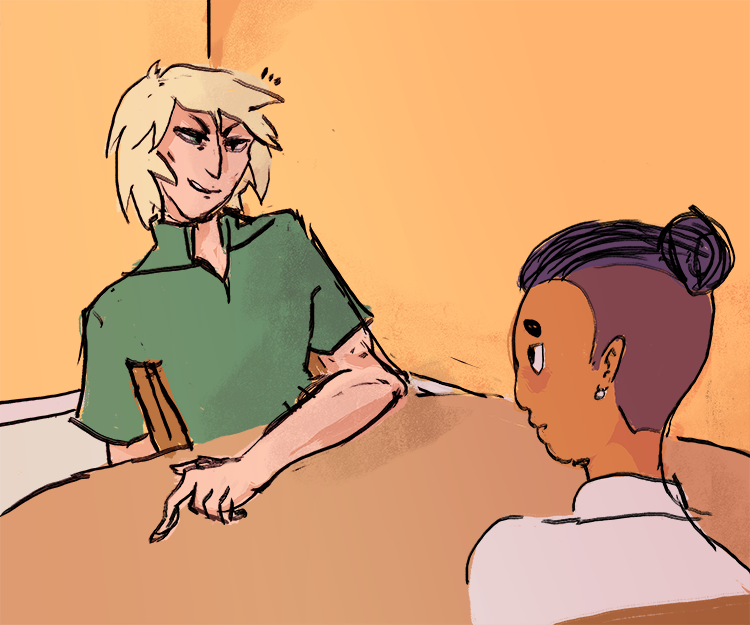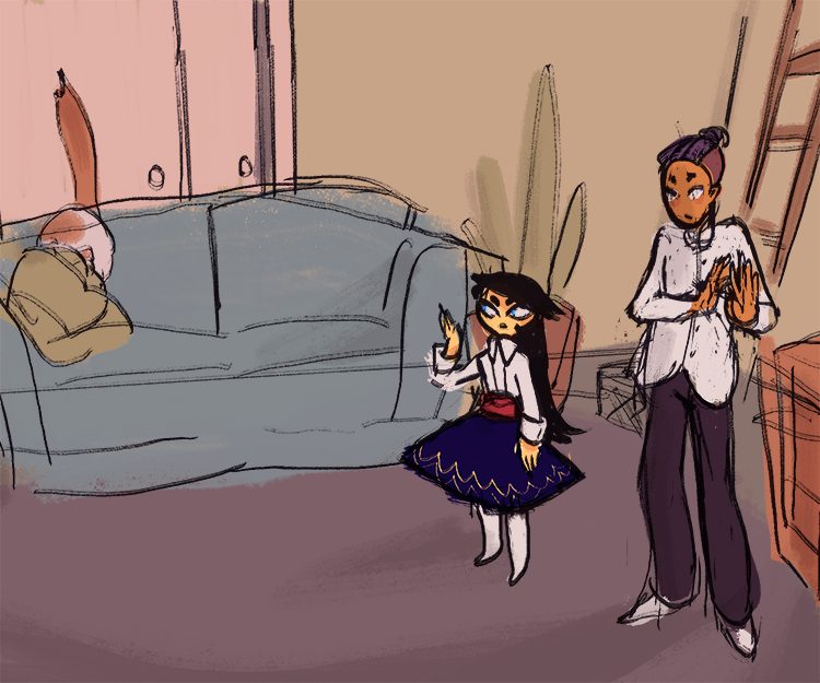 he covers his face almost immediately and lets out a long sigh. “gods, she’s so embarrassing. doesn’t she have better things to do?" when he finally looks back up at you, he’s smiling again, though it’s kind of an arduous one. trying his best to act like it doesn’t bother him? maybe you do have things in common. “that’s alright. she’s always like this.”