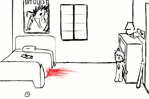 Bedroom: Dad's room. Mom passed away when I was even littler, so it was always just him and I. There is also a window here overlooking the porch roof. His bed is here, and some wardrobes. Some posters about something called WH40k are here, as well as a bookshelf containing fantasy and sci fi novels.
