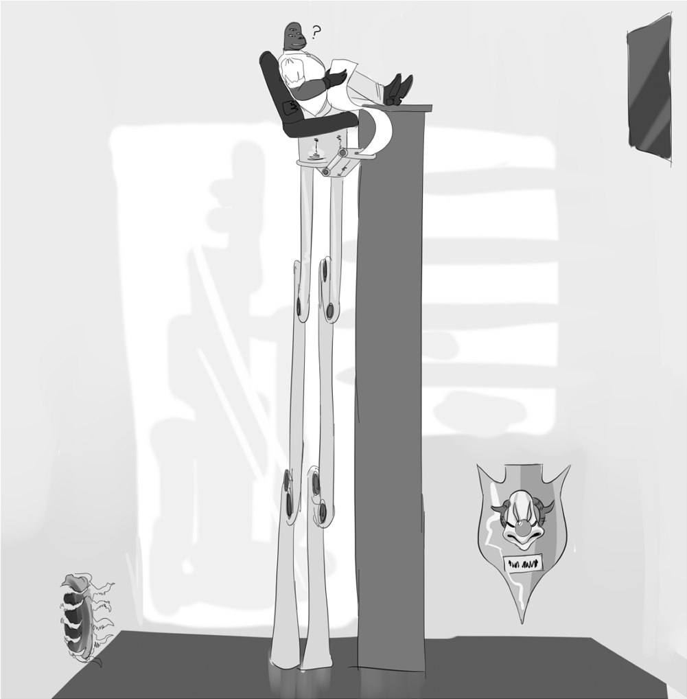 Your ASSISTANT, its long legs quivering under your mighty girth, produces a long SCHEDULE TICKET out of its mouth. You once had a talking assistant, one of the newer models, but it annoyed you more than anything and couldn't even raise you up to your desk properly. Very disappointing. You stormed back into the seller's store and demanded a full refund, a free pedicure at the local NAIL FURNISHING, and a written four-page apology for selling anything other than the finest quality products. You expect only perfection out of yourself, and you hold ALL OTHER LIVING BEINGS to that standard.