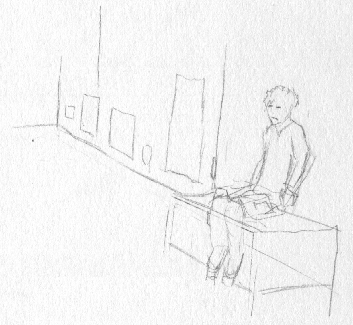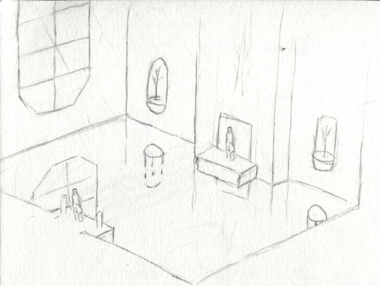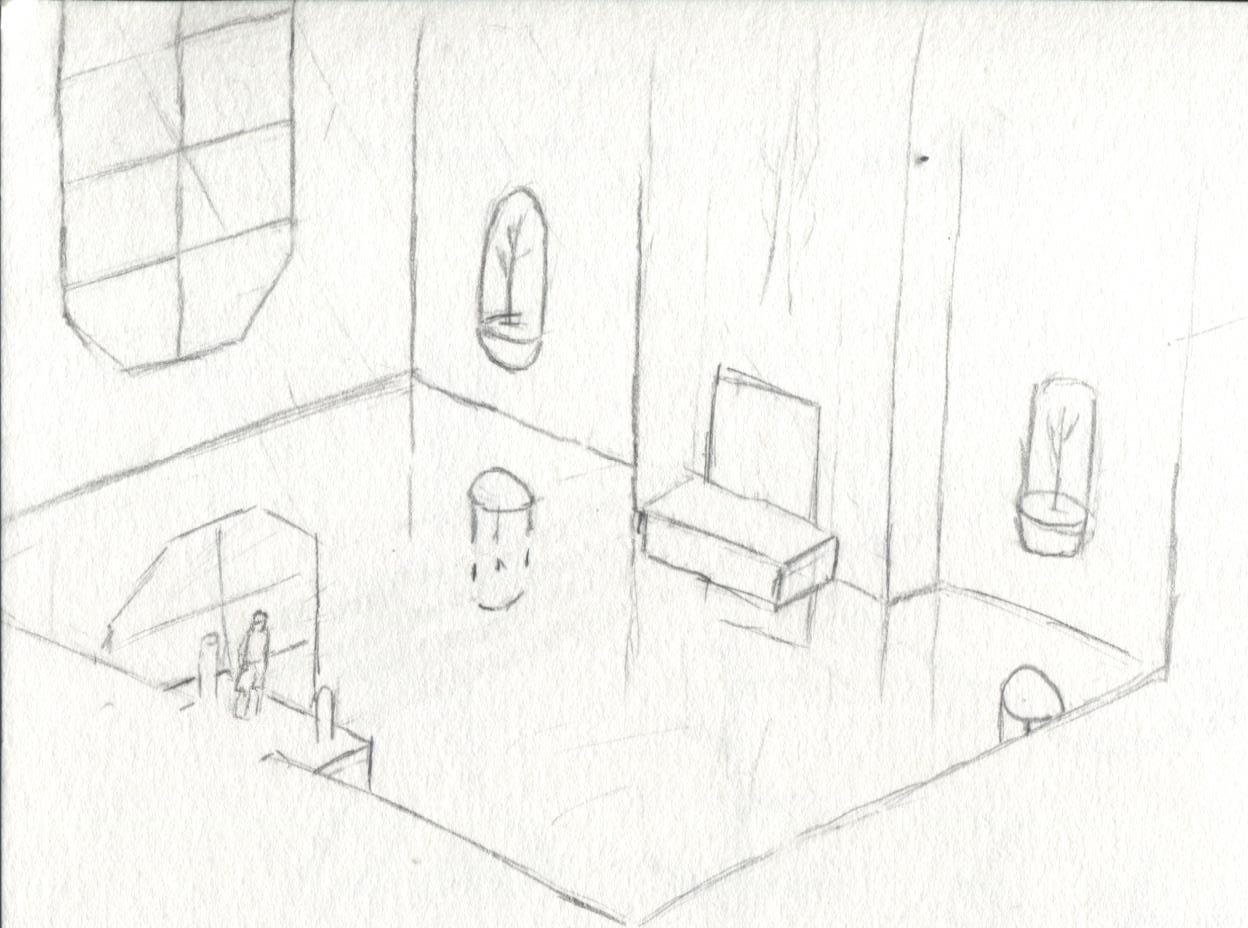 it looks like it's been lifted straight out of a cathedral, incense and all. the lower walls are light grey and featureless but after a point everything suddenly breaks off into yellowed sandstone.