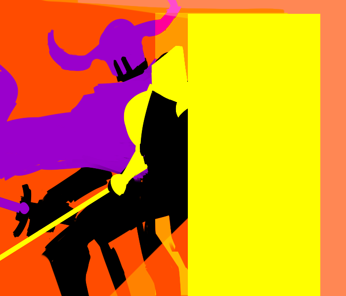 Yellow leaps though air to greet the beast below, his defensive wall skills cast