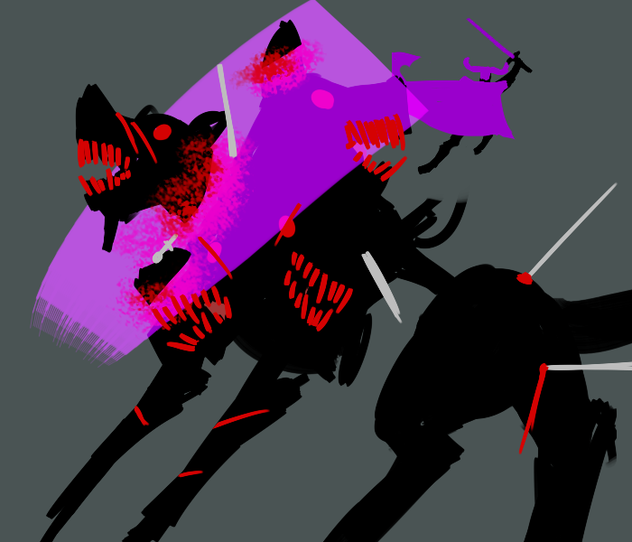 After the Hounds done turning the room a bright orange you make a leap towards its heads.