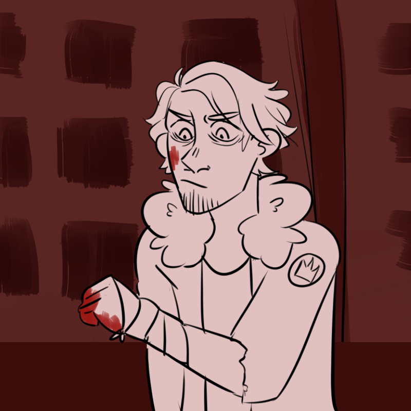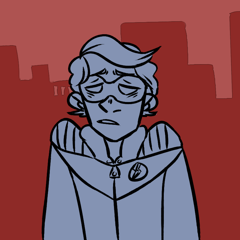 “I didn’t run into anyone, it’s been kind of a quiet night.” she says, carefully plastering my cut with colorful adhesive bandages. Now that it’s clean, it doesn’t look quite so bad. I use what’s left of my torn sleeve to wipe the blood off my face. “We could still keep looking, or we could ask around. See if Gray’s home, or if any other heroes are out.”
